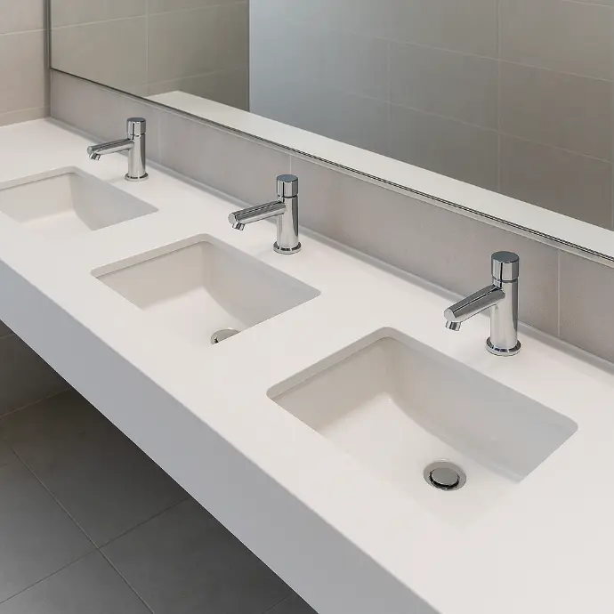 Il nostro ecosistema comprende lavabi e superfici in Corian®, rubinetterie temporizzate e a sensore, oltre a una selezione di accessori dedicati. .